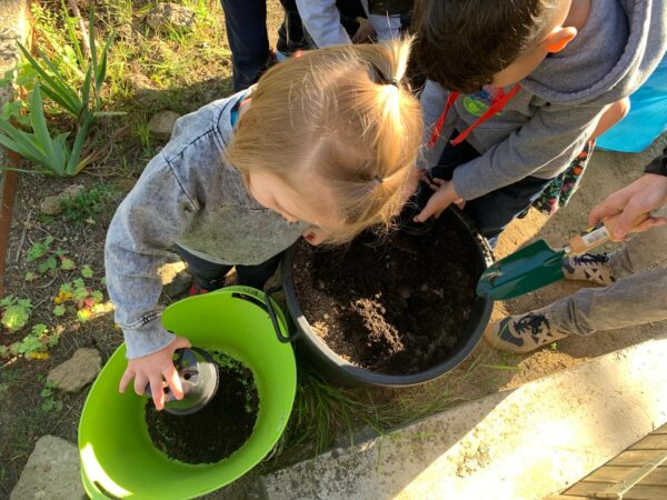 Han agafat esqueixos de romaní i espígol de l’hort dels grans, han posat compost a la terra dels bancals i han tret les males herbes.