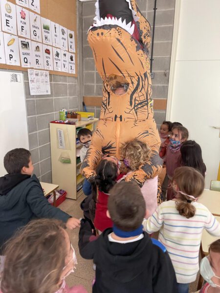 Els nens i nenes de primer hem començat un projecte nou: els dinosaures!!! Portem uns dies investigant i realitzant diferents activitats! Hem descobert els fòssils i hem creat els nostres propis, hem descobert que els dinosaures eren ovípars i hem fet els nostres ous de dinosaures, hem buscat informació… I fins i tot, ens ha vingut a visitar un dinosaure!!