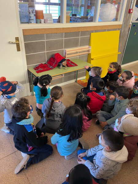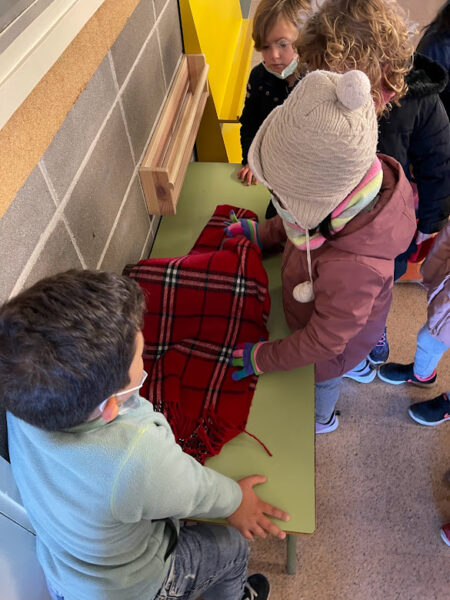 A infantil, ens l’hem trobat avui a l’aula groga ben abrigadet amb la seva manteta. De moment és molt petitó, però amb tot el menjar que tindrà aquesta setmana, de ben segur que creixerà ben ràpid!